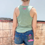 Colour: MOSS Features: Large front feature Bullzye print with gold foil Bullzye back neck print Self fabric bind on neck and armholes Logo hem label Fabric: 95% Cotton/ 5% Elastane...