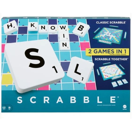Experience Fun Beyond Words with the Scrabble® board game, now featuring two games in one! Players can enjoy the classic Scrabble® crossword game they know and love – building words and angling for Double Letter and Triple Word scores – or they can flip the board and try Scrabble Together™, a quick, casual game where players cooperate to complete word challenges. These two games spell FUN for longtime and new players alike! Ages: 8+ Players: 2-4