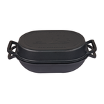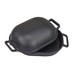 The Combo Camp Oven is a versatile cooking companion, made with pre-seasoned cast iron for durability and exceptional heat distribution. With its reversible design, this camp oven offers various cooking options over a fire or in an oven. The deep dish dome is perfect for cooking casseroles or curries, while the shallow base allows for roasting or baking. Additionally, each piece can be used individually as cast iron pans, providing even more culinary possibilities. The Combo Camp Oven is designed to withstand the rigors of outdoor cooking and is pre-seasoned, ready for immediate use. The two included lifting handles make it easier to check your food while cooking, and the trivet lifts food off the base for even heat distribution.
