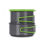 Strong and lightweight, this cookset is ideal for your next outdoor adventure. Made from hard anodised aluminium, the set includes: 1 x 1.2L Pot, 1 x 0.6L Pot, 1 x Silicone Lid and 1 x Nylon Scourer Pad. Mesh storage bag included.