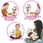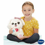 Say hello to Kosy The Kissing Puppy by VTech! She loves nothing more than being with her best human friend and giving cute puppy kisses. Like a real puppy her eyes open and close and her head magically moves! Kosy is very inquisitive and wants to know everything about you. Press her paw button and tell her all your favourite things and she will repeat what you say. Press her other paw button to sing together. Her beautiful charm button activates funny sounds mode, try to be a cat and she will meow with you! Detectors sense when Kosy is upright or laid down for play or relaxing time. Boop her nose for a sweet surprise!