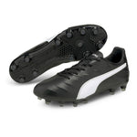 PUMA presents the new KING PRO 21 FG FOOTBALL shoes , made of leather and various latest generation materials. Designed for use on natural surfaces. Its anatomical design has a very comfortable low boot that optimizes all your movements. It has a lightweight sole with conical studs strategically distributed to enhance your potential in each step. It features a braided fastening system to generate greater stability and support. It has a folding tongue with the manufacturer´s brand. It presents a design of the brand with lines on the sides. It has a padded heel to cushion each step. Because legends don’t wait. Hailing 53 years of golden boots and brilliant play, the KING Pro is made for modern playmakers. As football gets faster and faster, control is key, so the reengineered KING takes its signature black leather and feel for the game to the next level. The boot features the all-new KINGForm technology: a rib structure that fuses to the super soft K-leather in key contact areas to increase touch and responsiveness. Specifications: Outsole: - Lightweight TPU outsole provides exceptional freedom of movement and support for dynamic moves. Suitable for use on firm natural surfaces. Upper: - Super soft premium K-leather features the all-new KINGForm technology in key contact areas to increase touch and responsiveness.