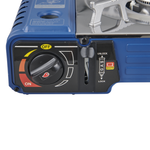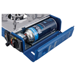 Safety is our priority, and this stove is equipped with a twin release system and a safety alignment mechanism for butane gas cartridges, ensuring secure and reliable operation. Built with a durable powder-coated steel cabinet and a stainless-steel drip tray, this stove is designed to withstand outdoor conditions and provide easy cleaning. It also includes an aluminium non-stick hotplate for added convenience.