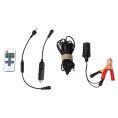 Ideal for larger sites, this light kit uses COB LED light which produces 2400 lumens which sits on a 2.5m aluminium extension pole. It features 12VDC weather-resistant connections, a wireless remote control for easy uses, ground mounting stake and packs away into a padded case for transport and storage.