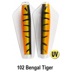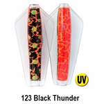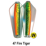 Tasmanian Devil lures are a unique Australian product designed for trolling, casting or jigging in fresh and saltwater. The lure action is due to the revolutionary winged technology that causes the lure to swim in an irregular manner, darting and diving, simulating the movement of wounded fish. This pulsating action is transmitted to the rod tip that will show as a “nodding action” that is proof that the lure is swimming correctly. If this rod tip action is not present, either a piece of weed, or a fish is on the hook. All four sizes of the Tasmanian Devil swim in this erratic manner and this is the reason our   lures are so effective. The loose flight stainless steel centre or the line-through rigging method used with the 7, 13.5, 20 or 26 gram version prevents fish from throwing the hook as both methods allow the lure body to slide up the line away from the fish. Regardless of the species that is targeted, the Tasmanian Devil qualifies as an all round lure. Whatever your quarry, from Brown Trout and Rainbow Trout to School Mackerel and Salmon, the Tassie Devil is a sure fire hit and will land you your target species time and time again. Effortless to cast, simple to troll and easy to jig.
