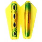 Tasmanian Devil lures are a unique Australian product designed for trolling, casting or jigging in fresh and saltwater. The lure action is due to the revolutionary winged technology that causes the lure to swim in an irregular manner, darting and diving, simulating the movement of wounded fish. This pulsating action is transmitted to the rod tip that will show as a “nodding action” that is proof that the lure is swimming correctly. If this rod tip action is not present, either a piece of weed, or a fish is on the hook. All four sizes of the Tasmanian Devil swim in this erratic manner and this is the reason our lures are so effective. The loose flight stainless steel centre or the line-through rigging method used with the 7, 13.5, 20 or 26 gram version prevents fish from throwing the hook as both methods allow the lure body to slide up the line away from the fish. Regardless of the species that is targeted, the Tasmanian Devil qualifies as an all round lure. Whatever your quarry, from Brown Trout and Rainbow Trout to School Mackerel and Salmon, the Tassie Devil is a sure fire hit and will land you your target species time and time again. Effortless to cast, simple to troll and easy to jig.