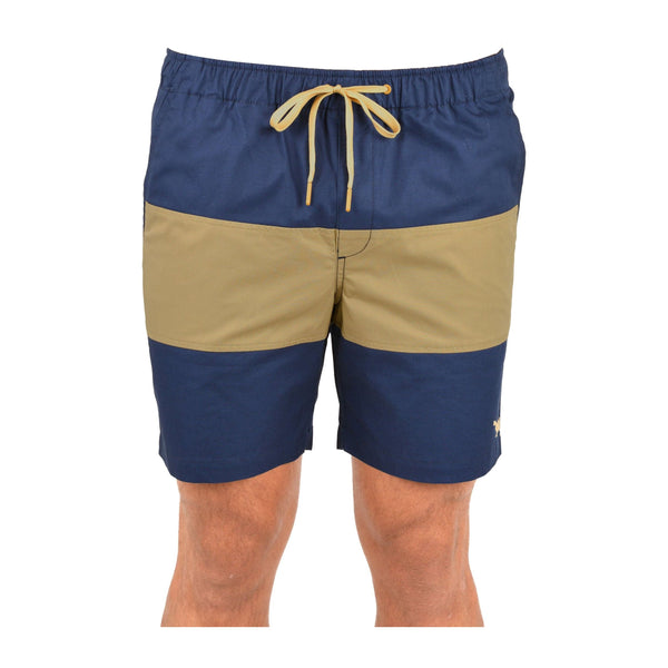 Colour: NAVY/SAND Features: Slant pocket style with elasticated waist, contrast cut’n’ sew panel, mock front fl y with contrast drawcords and metal trims, back welt pocket with TC logo label,...
