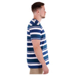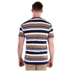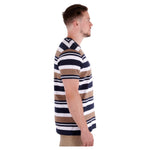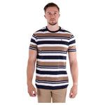 Short sleeve tee, multi colour stripe design, printed back neck label with logo neck binding, horseman embroidery on chest.