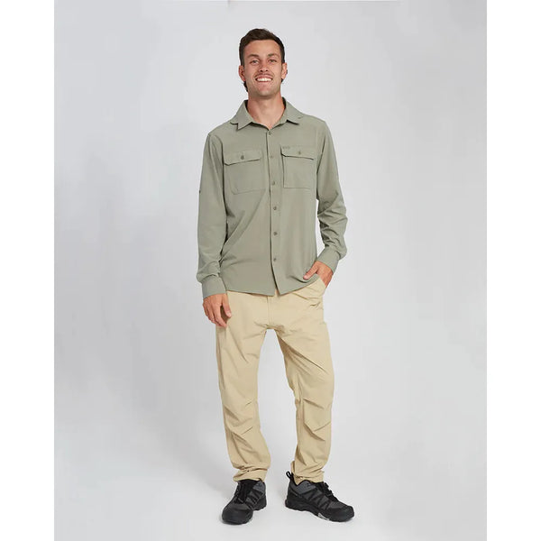 The Dunkeld Long-Sleeve Shirt is the ultimate hiking companion, crafted from 88% recycled nylon and spandex ripstop with UPF 50+ for superior sun protection. Enjoy the soft-touch mesh lining, roll-up sleeves and back-venting yoke that allows for plenty of ventilation. Color: Light khaki88% Recycled Nylon, 12% Spandex Ripstop 115GSM UPF 50+ DWR PFC-FREE Soft Touch Mesh Lined Yoke Internal Roll Up Sleeve with Tab and Button Hidden Chest Stash Pocket with Zipper Front and Back Yoke Panels Button Up Centre Front Placket and Sleeve Cuffs Vent Back Yoke for Ventilation Collar Extension for Sun Protection Lightweight Quick Drying Fabric Chest Pockets Back Length L=76.5cm Certified Carbon Neutral Product Colours: Light Khaki or Sand