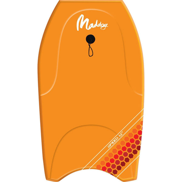 The Maddog Speed Body Board 42" is ready to take on waves and have fun in the water. Featuring XPE contoured deck for increased traction and durability, a crescent tail for manoeuvrability, eye catching slick graphics and a HDPE rigid slick for maximum speed.
