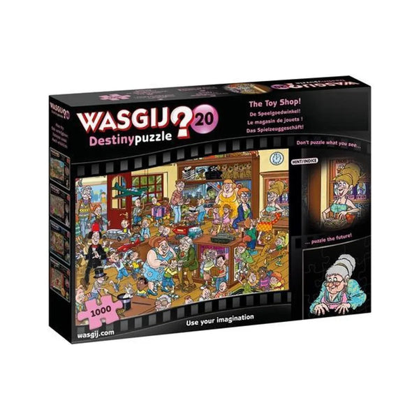 Wasgij: 1000 Piece Puzzle – Destiny #20 (The Toy Shop) ‘The Toy Shop’ is the title of this brilliantly funny Wasgij Destiny 20, 1000 piece jigsaw puzzle. Do you remember as a kid walking into the place you called heaven a toy shop? So much as changed over the years as what is in a toy shop now. Try to imagine what this toy shop would look like in modern day, the interior would have changed, but what else might of? This is the scene you will have to puzzle. Specifics: * Title: The Toy Shop * Series: Wasgij Destiny * Artist: Wasgij * Piece Count: 1,000 Suitable for ages 8 & up.