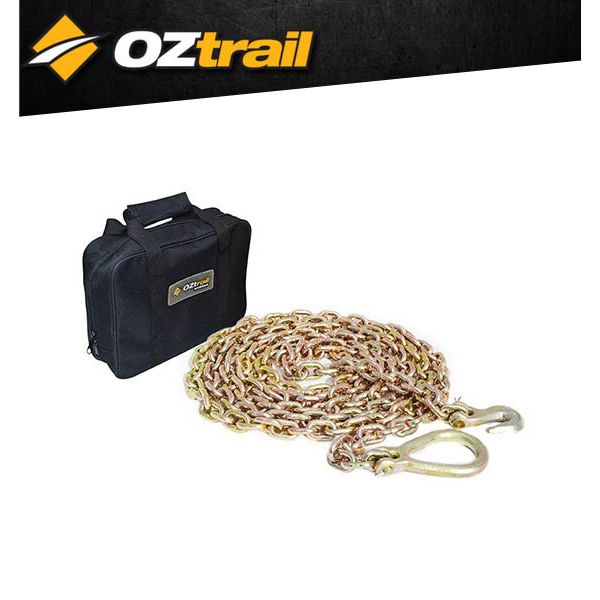 An essential tool for serious recovery and off road trail maintenance. Rugged zinc coated. 8mm grade 70 chain Forged steel clevis lug and grab hook 8 metre Length Rated to 2400kgs Includes Carry bag