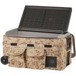 This insulated cover suits the 50 litre Brass Monkey Fridge, GH1642. The heavy duty design will improve fridge efficiency by providing improved insulation, while protecting the fridge case from damage. GH1672 Improve the performance of your portable fridge with this insulated fridge cover. Designed with mesh panels for compressor ventillation plus access panels for handles and lid. - SUITS GH1642 Features: • Camouflage Print Heavy duty insulated cover • Pockets to store cables and power supply • Clear panel allowing easy view of LCD and temperature controls • Tie down points on each corner allows for secure mounting of cover • Vents enabling air circulation allowing the compressor to cool down during operation • Provides protection and insulation, leading to efficiency and longevity • Designed for Brass Monkey 50 litre fridges Note: May also suit other brands such as Primus®, Stirling®, and Spinifex®. Visit any of our retail stores to see if it suits your existing fridge.
