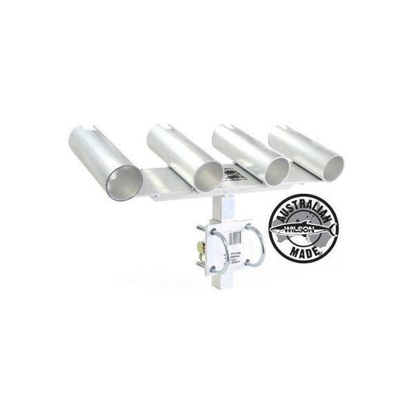 AUSTRALIAN MADE Removable 4 Hole Bull Bar Rod Carrier with Quick Release Clip - Suits 2" Bull Bars Secure the base to your bull bar and attach & remove your carrier to suit using the quick release mechanism. This ensures easy removal to help comply with the bull bar rod carrier rules and laws.