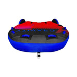 ION Details The KD Gravity is a wild ride for up to 3 thrill-seekers! Defy centrifugal force with this towable’s topside stabilizer fins. The 6 deluxe soft grip handles with neoprene knuckle guards provide a sure and comfortable grip. The Gravity has a tough 30-gauge PVC bladder, fully covered with an 840-denier double-stitched nylon cover. It is equipped with a quick connect for easy and secure tow rope hook-ups. 3 person D Shape Deck Tube Water drain Soft grip Handles Boston valve Soft Top for complete comfort Quick connector for easy towing Heavy duty nylon Cover Dimensions when deflated: 78” | 198cm