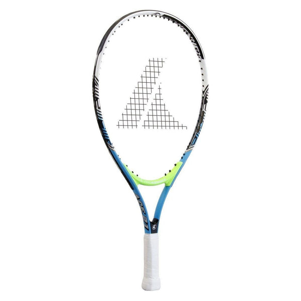 Crafted with beginner kids in mind, the ProKennex Ace 21 Junior tennis racket is a quality pick due to a durable aluminium frame a shorter 21’’ (522mm) length. A much lighter weight allows to practice surely groundstrokes and rebounds, and the smaller 95in2 (615cm2) head size ensures good control over shots and a significant boost to youngsters’ accuracy. With a comfortable grip and standard 16 x 19 string pattern, the racquet ensures many exciting memorable moments on the courts, plus it arrives with a ¾ head cover for a proper transportation and protection.