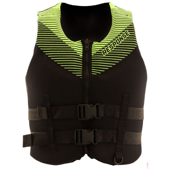 The 4-panel RESPONSE Neoprene Level 50S PFD Life Vest is super comfortable, stylish, and great to take anywhere and everywhere. Increased arm holes for easy comfort and more mobility than other vests, the oversized armholes and front zip entry allow for maximum manoeuvrability and reach, and easy entry.
