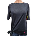 Breathable bamboo fabric keeping you cool, natural fibre, soft & cool handfeel, front knot tie detail, horseman embroidery at side hem, stretch for comfort