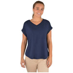 Features: Breathable bamboo fabric keeping you cool, natural fibre, soft & cool handfeel, rib V neckline, contrast Thomas Cook logo internal bind, lace trim insert at shoulders, sleeve openings and centre back seam, curved hem, horseman embroidery on side hem, stretch for comfort and movement Fabric: 96% Bamboo, 4% Elastane Jersey, 300gsm