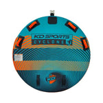 With its low-profile design, the KD Cyclone is one of the hardest charging two person tubes on the market thanks to giant 60” diameter it gives both riders heaps of space and helps to avoid accidental collisions. Never one to skimp on quality, KD Sports have used a three-piece construction with their Cyclone’s heavy duty 820denier cover, this strengthens seams and reduces the likelihood of splitting edges. Determined to add further value, KD have done away with the tiny neoprene panels and instead upgraded the KD Cyclone to a full neoprene top deck, not only does it look amazing, but it eliminates the chances of getting any tube rash as you’re whipped back and forth down the lake. The KD Cyclone is proven crowd favourite tube that’s just gotten bigger and better!"