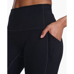 Extra high figure flattering secure power mesh waistband with a flat jaquard elastic finish across the back, provides supportive coverage and shaping without getting in the way of your floor work.