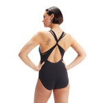 Twisted cross back strap detail and flattering placement print designed to visually shape the body