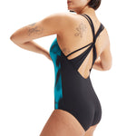 Love your look with stylish shaping swimwear. Swim in style wearing our flattering black Calypso swimsuit, featuring a scooped neckline and a captivating side panel print in beautiful teal. An attractive twisted back strap design with delicate rouleau detailing adds a feminine touch. Ideal for regular swimming and holidays, the suit includes a hidden bust shelf liner for a supportive fit. Our soft new SHAPE COMPREX fabric teams the best in shapewear innovation with the latest swimwear technology. Perfect for regular wear, it includes LYCRA¨ XTRA LIFEª, which is ultra-chlorine-resistant and lasts twice as long as standard swimwear fabrics. SHAPE COMPREX is made in part from recycled waste. The nylon yarn in the fabric is made from 100% pre-consumer waste, such as waste from factories.