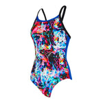Feel the water with Zoggs Liquid Lava Strikeback! The medium leg cut, front lining, and open back design ensures comfort and allows you to feel the water rush over your back whilst swimming.
