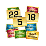 Includes: 22 briefcase envelopes, 22 x cash cards, 1 x banker offer guideline card, 1 x scoreboard, 1 x instructions, 1 x golden ticket with a unique code, 1 x terms and conditions sheet.