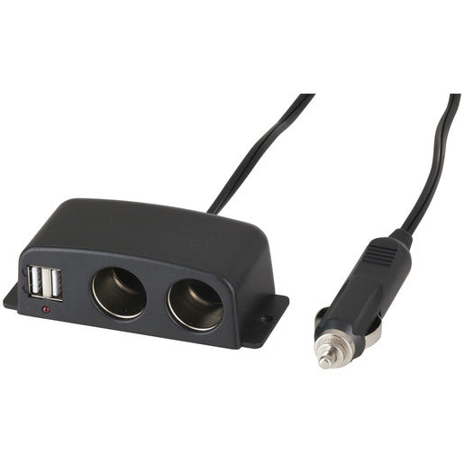 Power two 12V accessories and 2 x USB devices at the same time. Features a fused cigarette lighter plug on a 650mm lead, and mounting holes for a permanent installation....